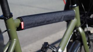 まずはグリップ。14インチ小径車ということもあって、ハンドルから手に伝わる衝撃はなかなか大きいです。これを軽減するために、紆余曲折あって最終的には「Tioga Ascentia Eグリップ」という製品に落ち着きました。