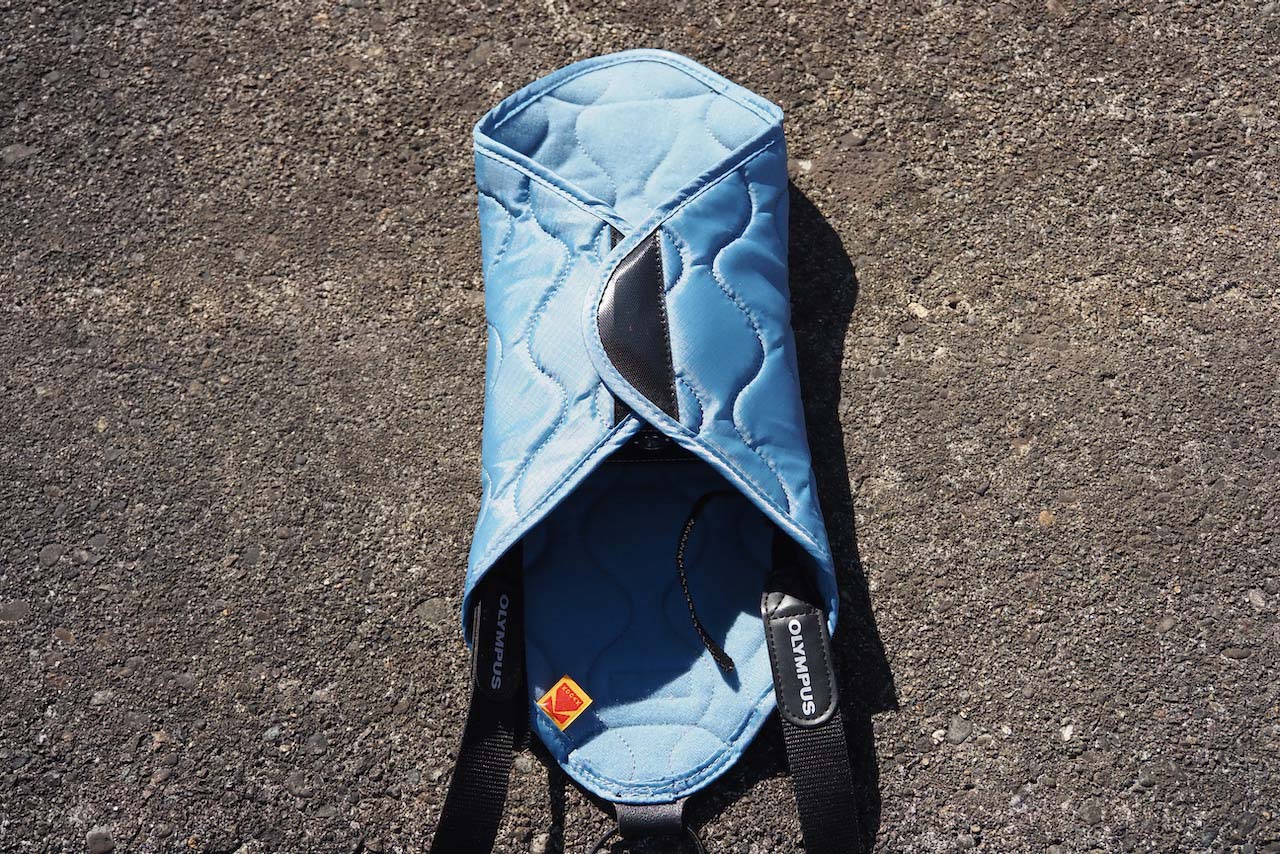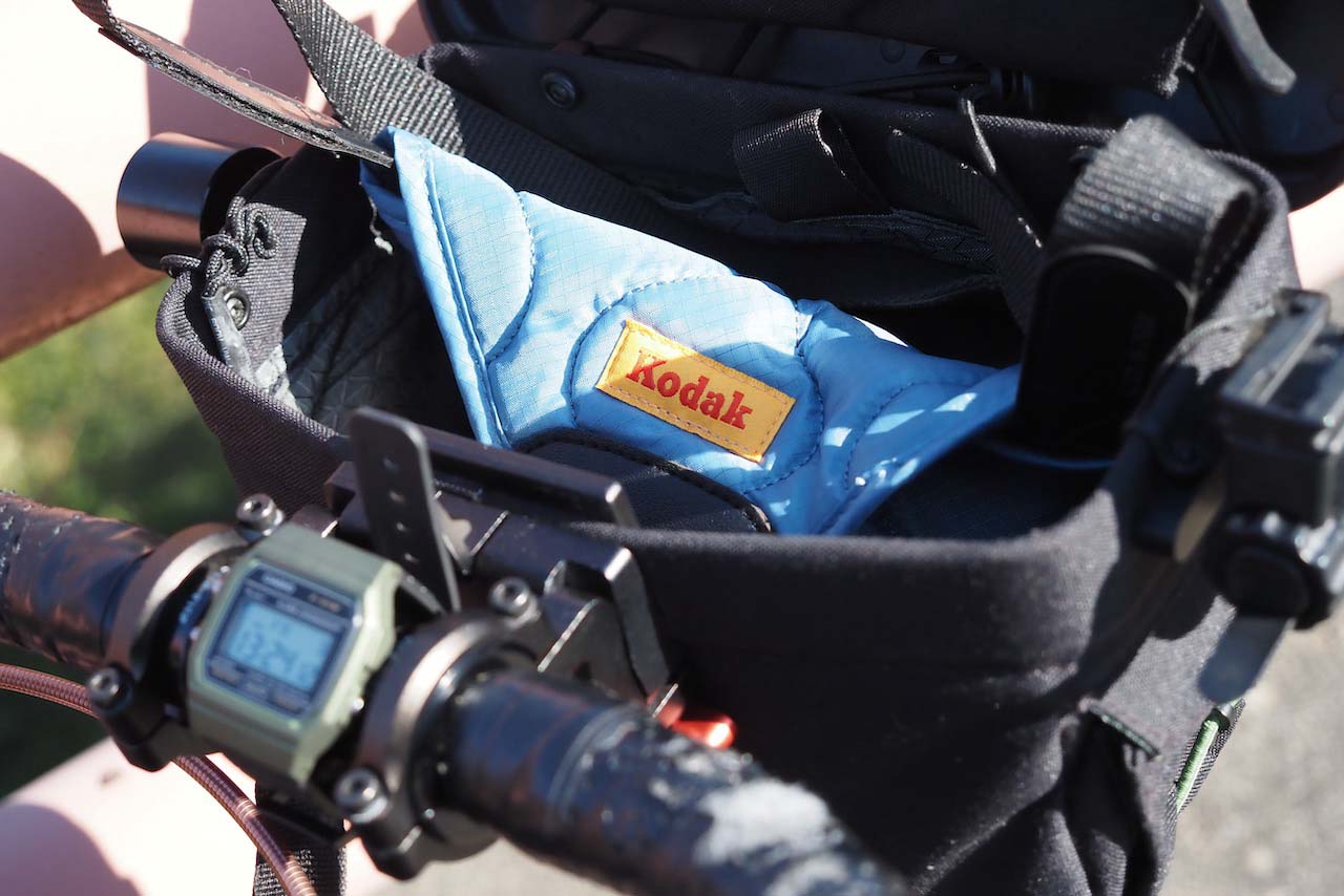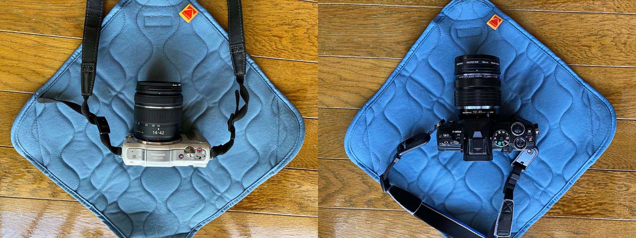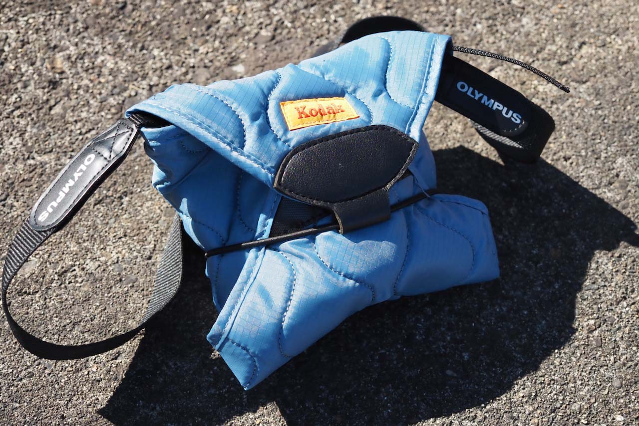 これと同じようなコンセプトの「カメララップ」は、他にもマイクロファイバー製でカメラやレンズを拭けるタイプのものを所有しているのですが、このKODAKカメララップはクッション性の高さを重視しているところ、さらに撥水性も加わっているところが新たな価値。特に「あまり傷つけたくないカメラ」をハンドルバーバッグやパニアバッグに突っ込んでおきたい時に助かります。