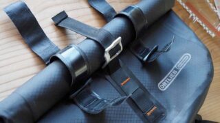 生地はキルトのような感じで、クッション性は「まずまず」といったところ。まずまず、というのは、例えばハンドルバーバッグ内でライトや鍵といった他の硬いアイテムと摩擦しても傷が付きにくいだろうといった意味で、大きめの衝撃を吸収できるほどではない印象です(個人的にはもう少しだけ厚みがあったほうが嬉しい。すると大きくなってしまうんだろうけど)。
