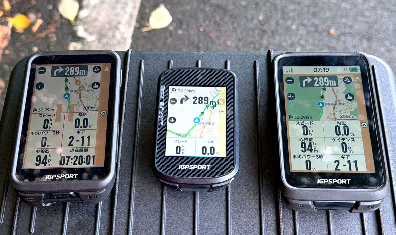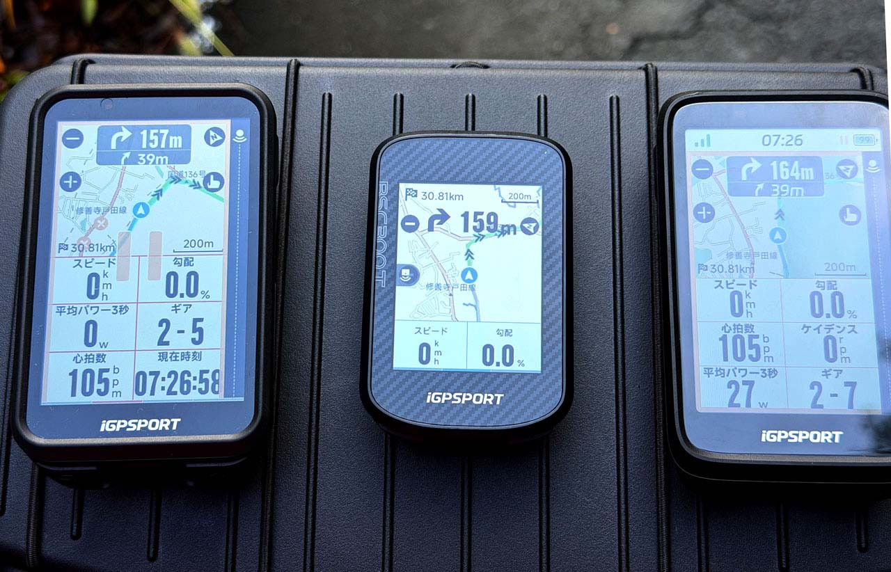 並べて比較すると、確かにiGS800の液晶の方が明るく見えます(少なくとも、私の所有している個体では)。ですが屋外で実走したときは横並びにしていても「液晶の明るさに差がある!」なんて、これっぽっちも思わなかったです。つまり、その程度の差。