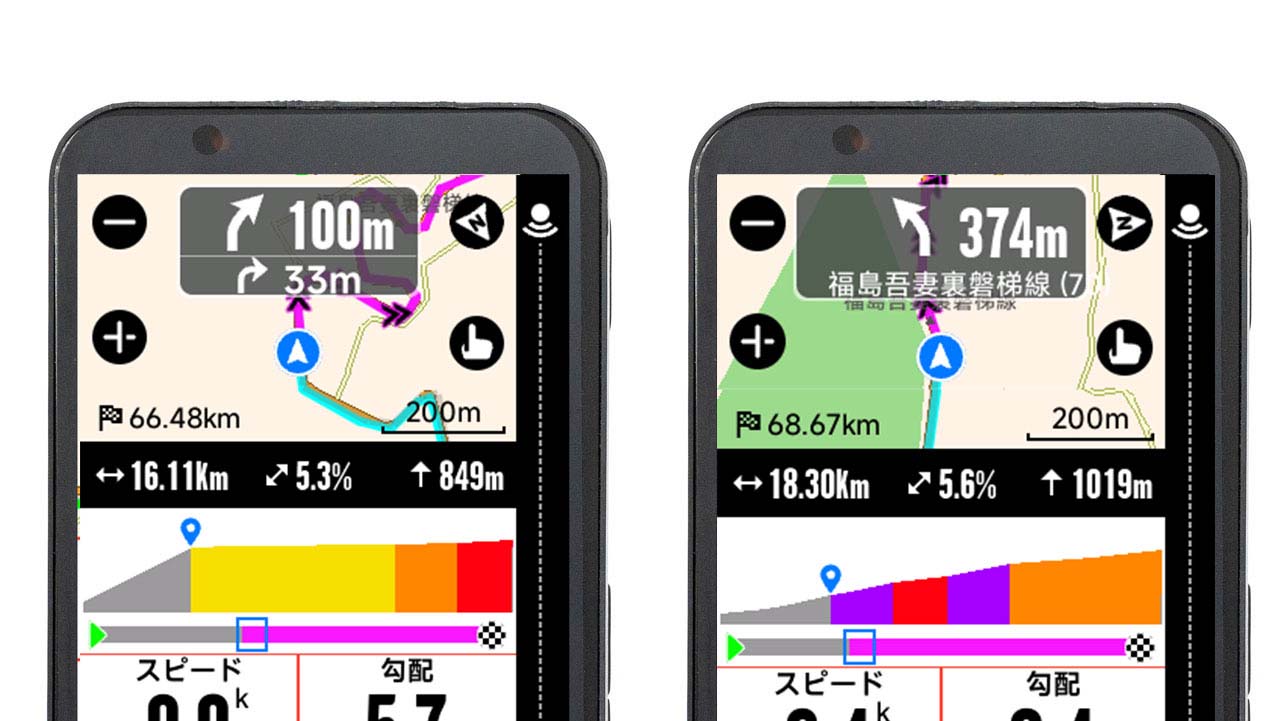 もしかして、いまやiGS800とBiNaviの機能的な差異って「バッテリー容量」「Wi-Fi接続」「ステータスバーの有無」「iClimb画面での進路変更アラートの表示スタイル」ぐらいなのかも?