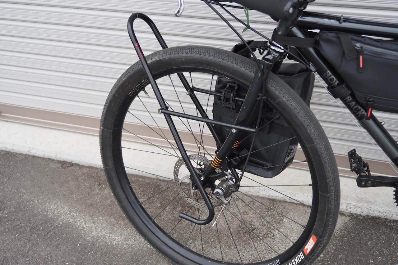 - Surlyのラックはそれだけで3.5ポンド(=1.58kg ※筆者注:現行モデルの公称値は1382g)あります。丈夫で調整もしやすいものですが、1〜1.5kgのフロントパニアを運ぶだけならあまりにオーバースペックです。フロントに天板があるので、バスケットや筒状のものを載せることはできます。私は恐らくこれを買うことはもうないでしょう。
