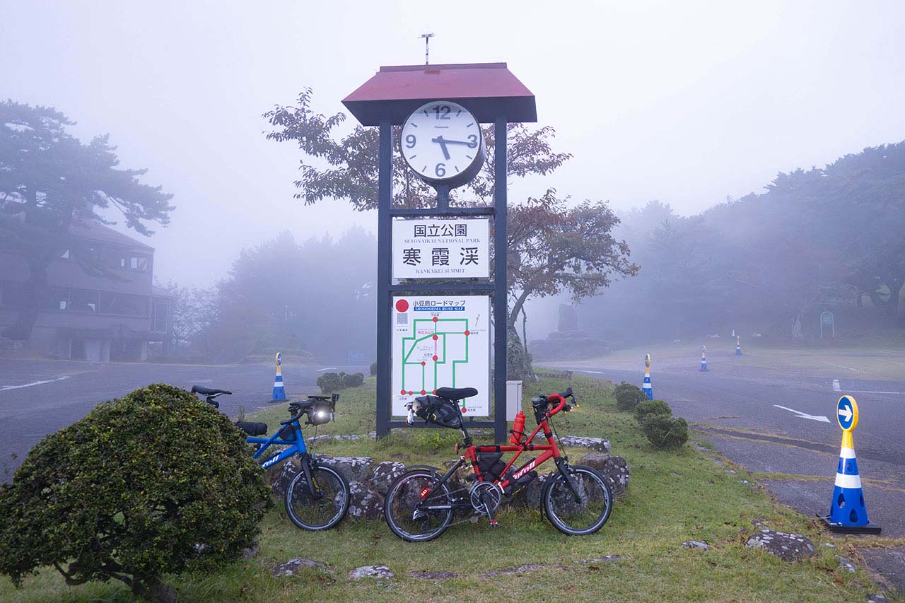 気温は低いものの、天候は霧雨気味で湿気がムンムン。そこへヒルクライムで大量の発汗が加わって、全身が人間加湿器と化します。そのうえ登坂中ですから、速度は歩くより遅い。走行中なのにアイウェアの曇りが気になって、指でレンズを何度も拭きました。