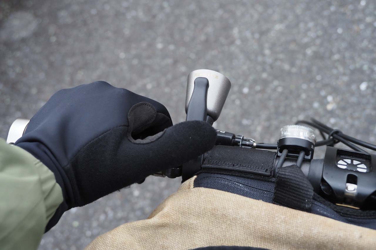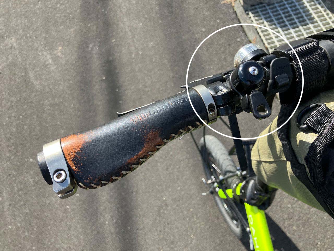 Dahon K3のハンドルに装着した様子です。ブレーキレバーの真隣は、親指がちょうど届きやすい位置でした。取り付けにあたって問題はゼロ。モノとしての質感も合格です。