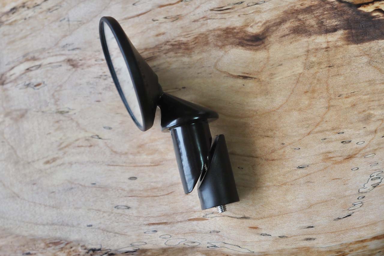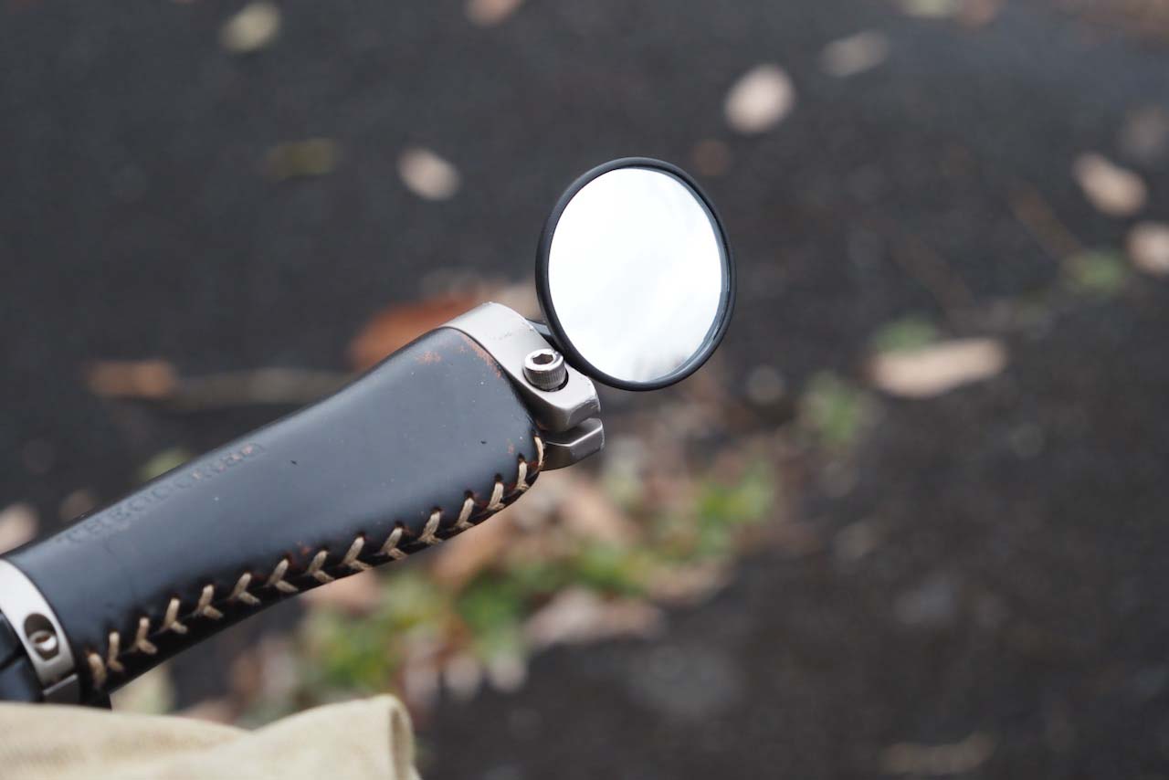 しかし使いはじめてすぐに感じたのは、あくまでフラットバーハンドルでは、という条件付きですが、自分の身体側への角度調整の範囲が狭く、後方から接近するクルマを確認したい時は頭を動かして少し「覗き込む」必要があるということでした(私の場合は、です。ハンドルの長さや形状、頭の位置なども絡んでくるのかもしれません)。