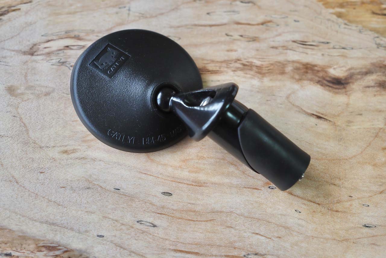 支持部の先端がボールエンドになっていて、ミラーにはめこまれています。筆者はミラーの角度調整中に、一度本体からもいでしまいました。ボールエンドを再びミラーに差し込もうとしたところ、これがものすごく固く、はめこむのに苦労しました。Amazonレビューを読むと戻せずに諦めてしまった方も多いようですが、気持ちはわかりました。でも頑張れば戻せると思います。