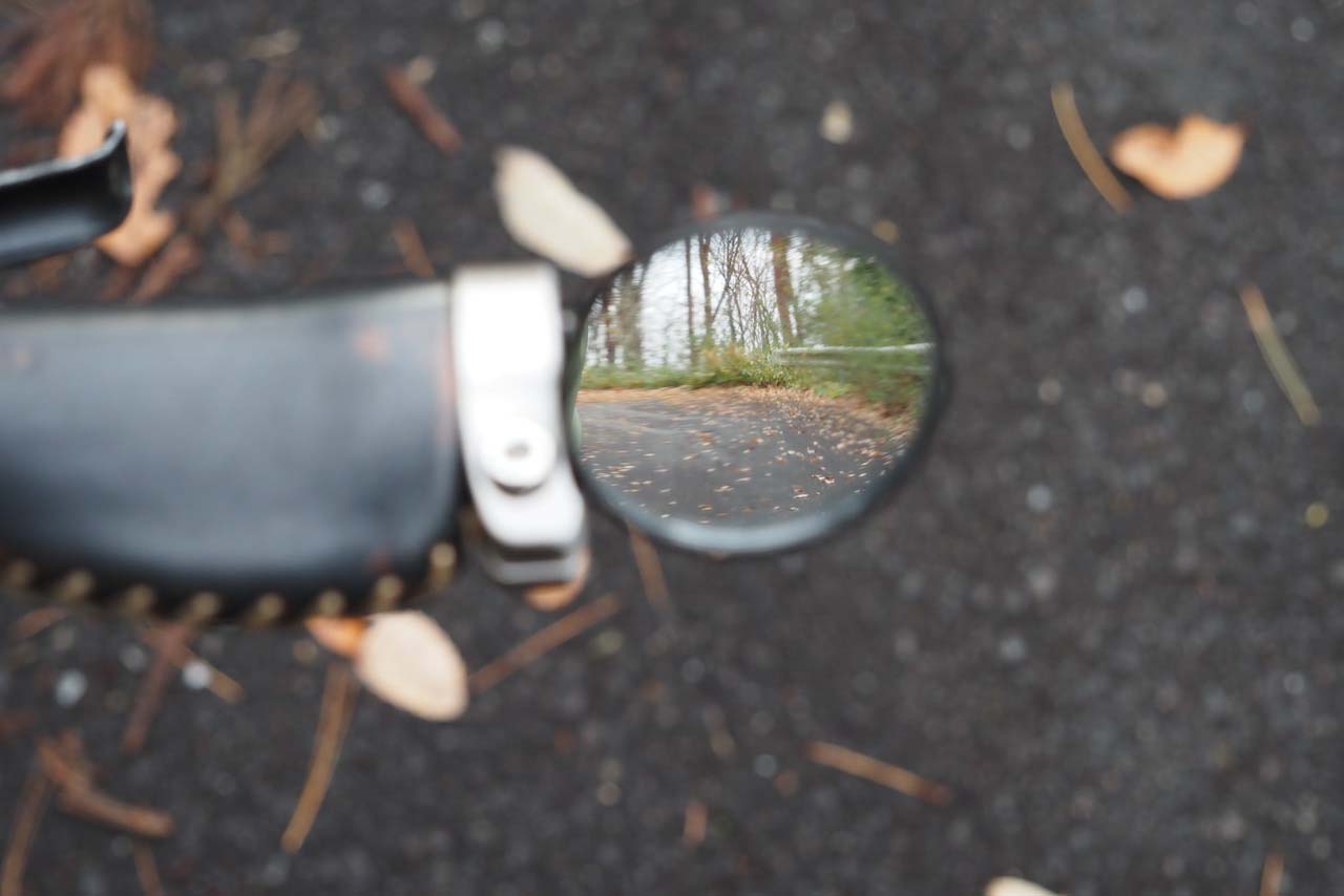 鏡像の品質はどうか。ぱっと見た感じはZefal社の小型ミラー製品群のそれよりもわずかに明瞭で見やすいように思え、好印象を持ちました(くすみが少なく、ブライトな感じがします)。写真で確認すると両サイドの像がかなり流れる傾向があることに気付きましたが、屋外では不思議とほとんど気になりませんでした。