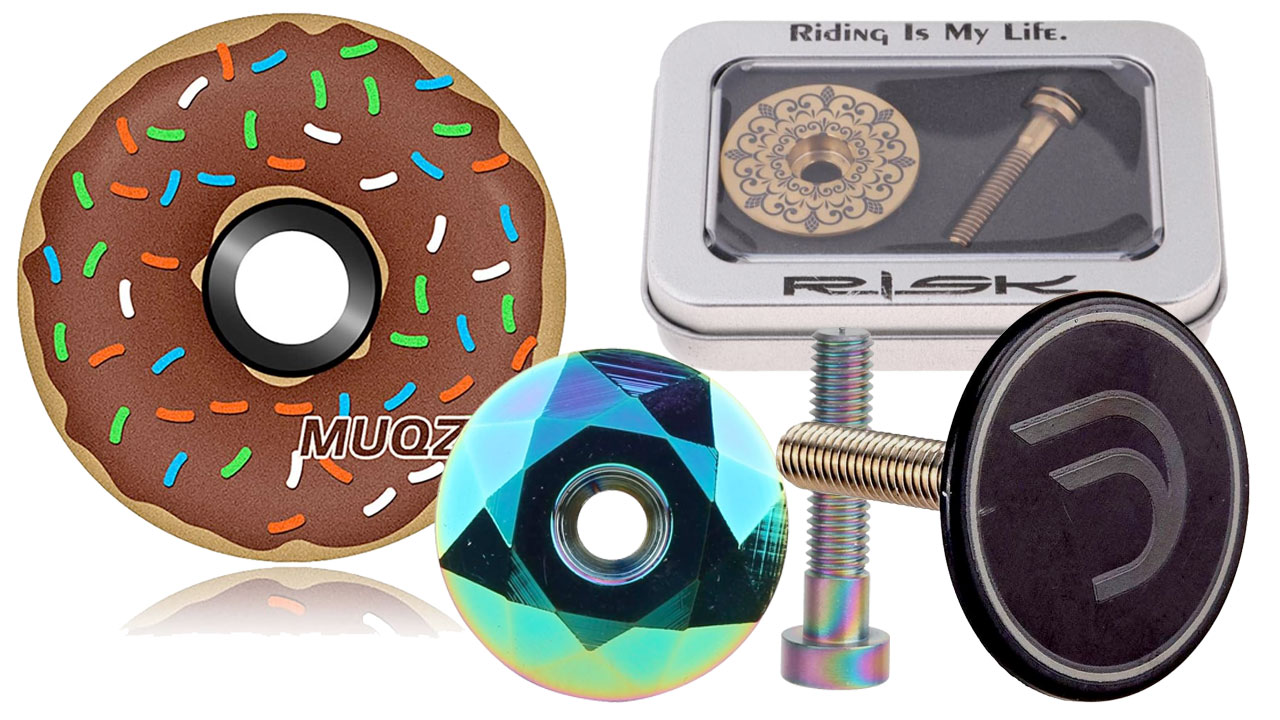 日本のAKI WORLDも風変わりなトップキャップを出していました。これはハートやクローバーのかたちを削り込んでいるように見えます。かなり凝っていますね。そうか、いま気付いたのですがデローザとコルナゴを意識したもの!?
