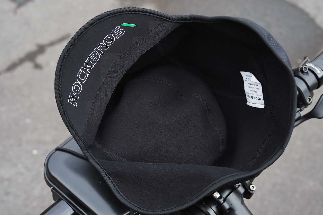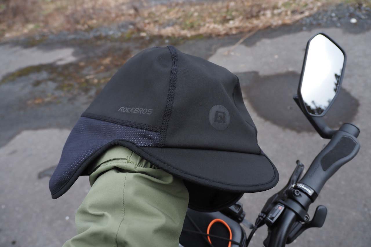 ROCKBROSの裏起毛サイクルキャップ・インナーキャップはバイザーと耳当てが便利。適度なハリがあり冬の高強度ライドにも良し