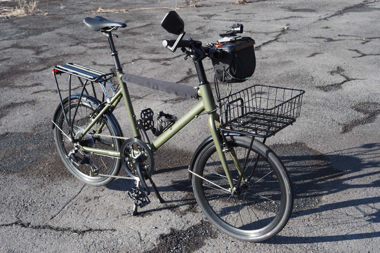 斜め後方から再び全体像を。アデプトのトラスポーターラックと20インチ用レッグの組み合わせ、やはり素晴らしいですね。見た目も品質もインストールの簡易さも全て合格。Tern Crestでフロントラックを使いたい方はこれを試さない手はないのではないでしょうか。私にとってこれは英語でいうところの”Godsend”(天からの思わぬ贈り物)になりました。ローライダーラックの導入も検討していたのですが、もうこれでいい。というか、これがいい。