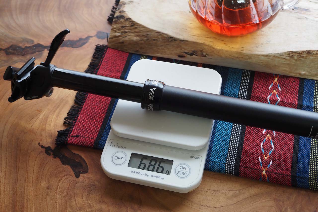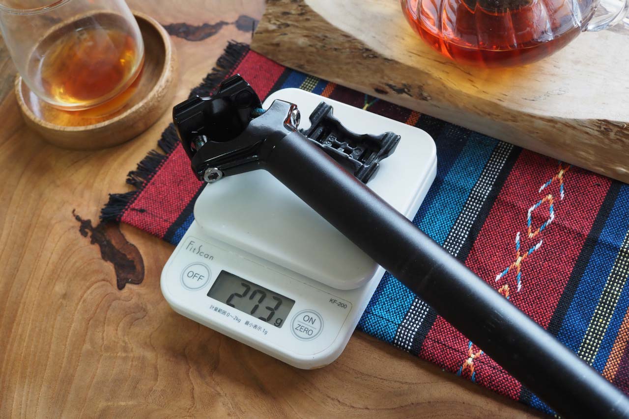 ちなみにこのDJCドロッパーシートポストを装着するTern Crestの純正シートポストを計ってみたところ、実測で273g。交換後は412gの重量増となります。