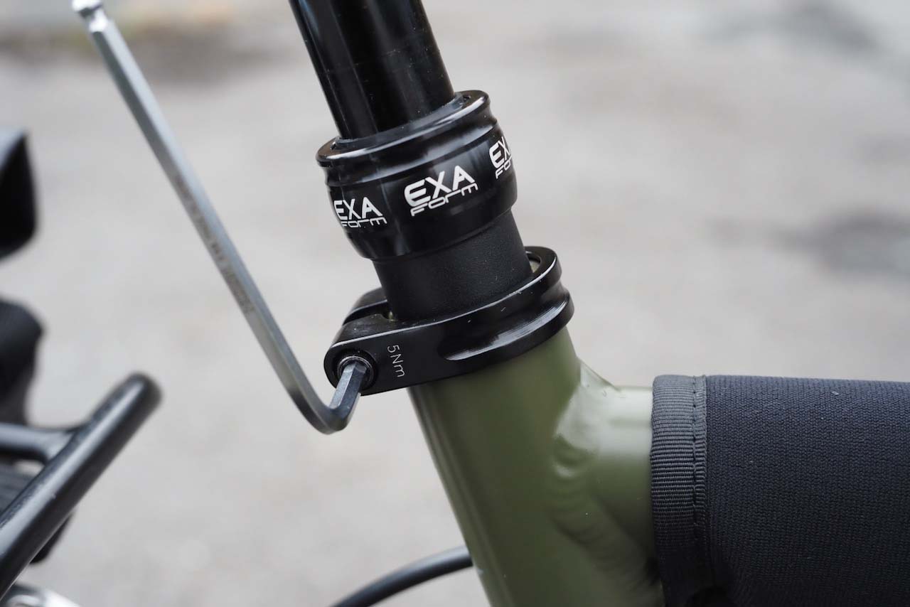 動きがスムーズになってきたとは言え、レバー操作ということもあり、ライド中に「狙った高さ」にピンポイントで持ってくるのは簡単ではなく、下がりすぎたサドルをまた少し上げて、また戻して…といった微調整を繰り返す必要があります。ライドのペース・ペダリングのペースを乱さずにサドル高をスムーズに変更したいのであれば、レバー式という選択はないのかもしれない、と思いました(ポタリングならあまり不満は出ないかもしれませんけれども)。