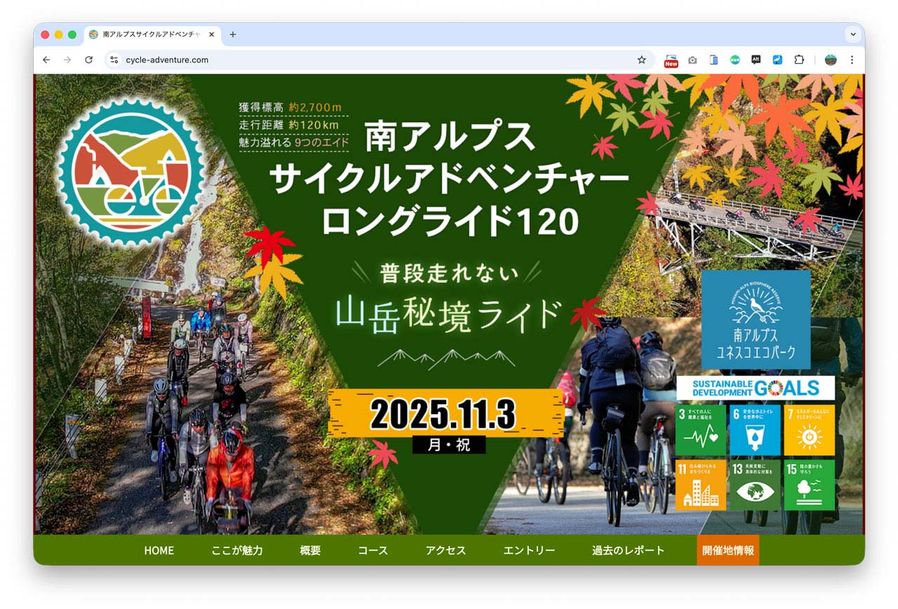 2025年11月3日に開催された、南アルプスサイクルアドベンチャーロングライド120。本イベントは公式サイトによると