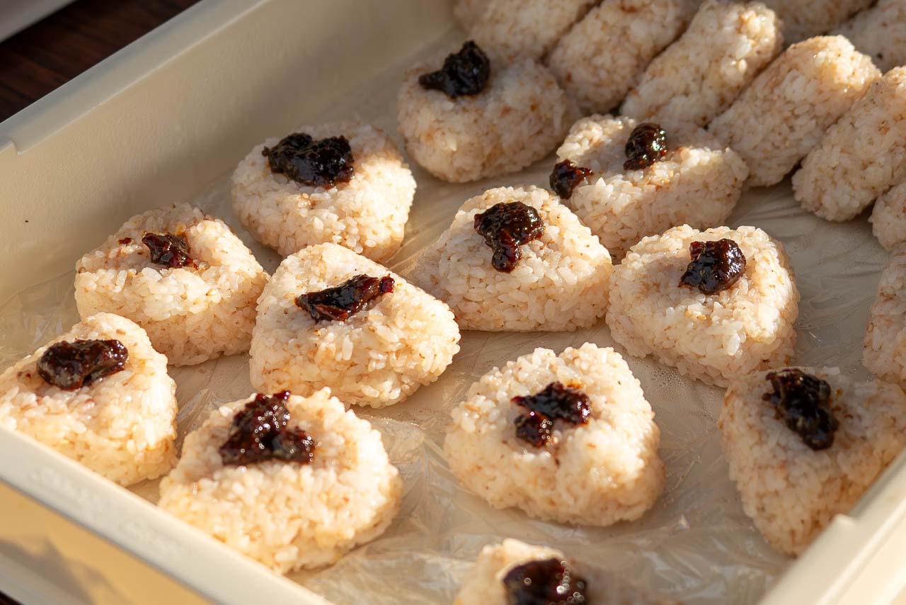 おにぎりには、味噌おでんの味噌をつけていただきました。