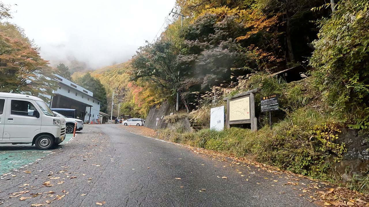 もう登坂するの無理!回収車に連れて帰ってもらう!! 緊急連絡先の番号どこだっけ…? とか考えていると、ようやく夜叉神峠の登山口に到着。