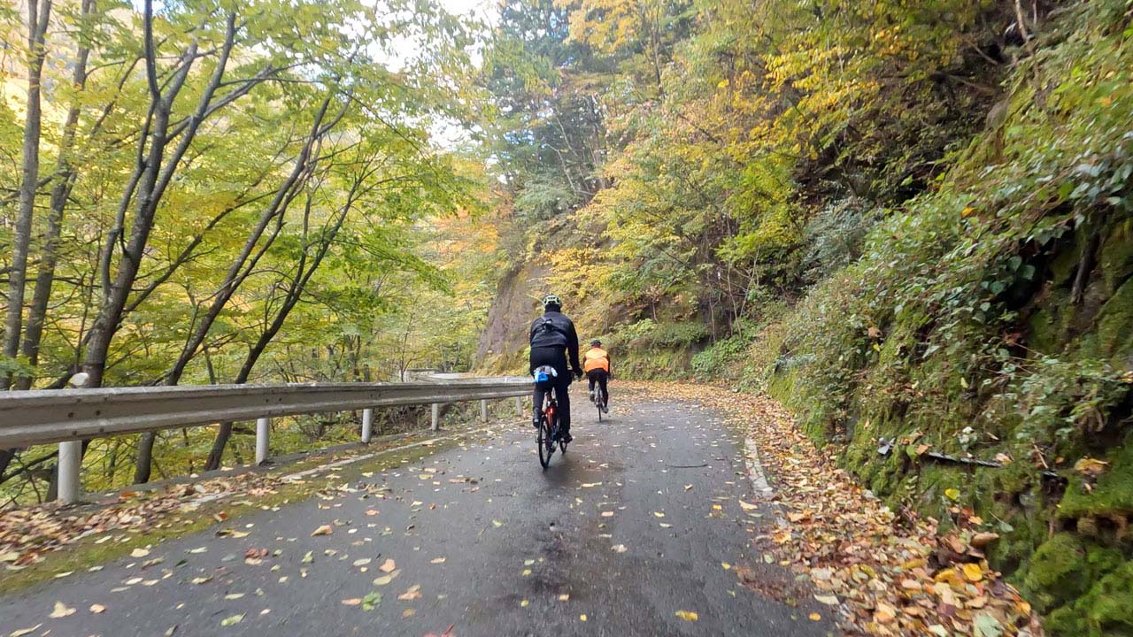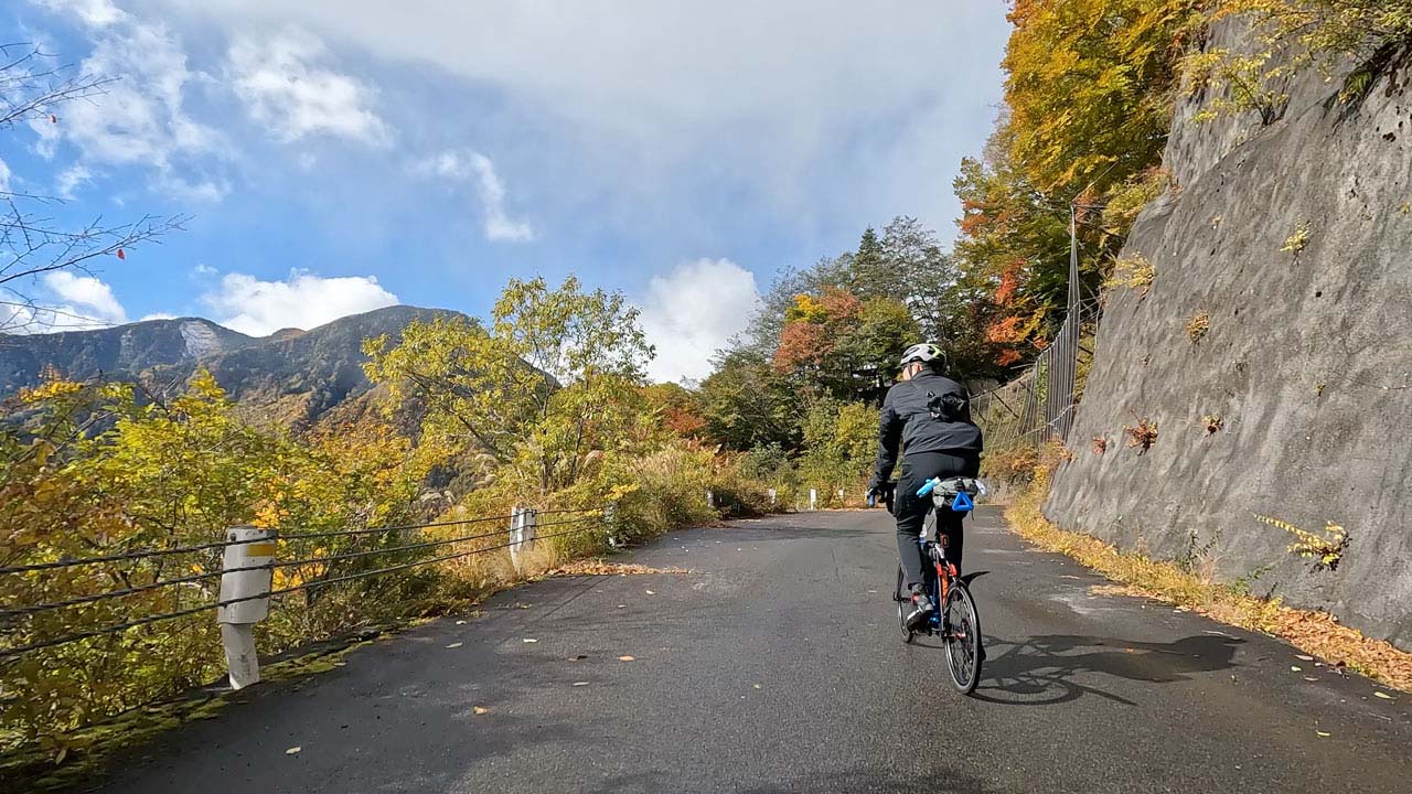 しばらく走っているとキツい登坂が始まって、瞬く間に汗だく。ですが、それはホンの序章に過ぎません。22km付近で芦安温泉郷方面に曲がると、激坂が本気を出してきやがりました。斜度がガッツリ上がり、インナーローでも脚がプルプルです。