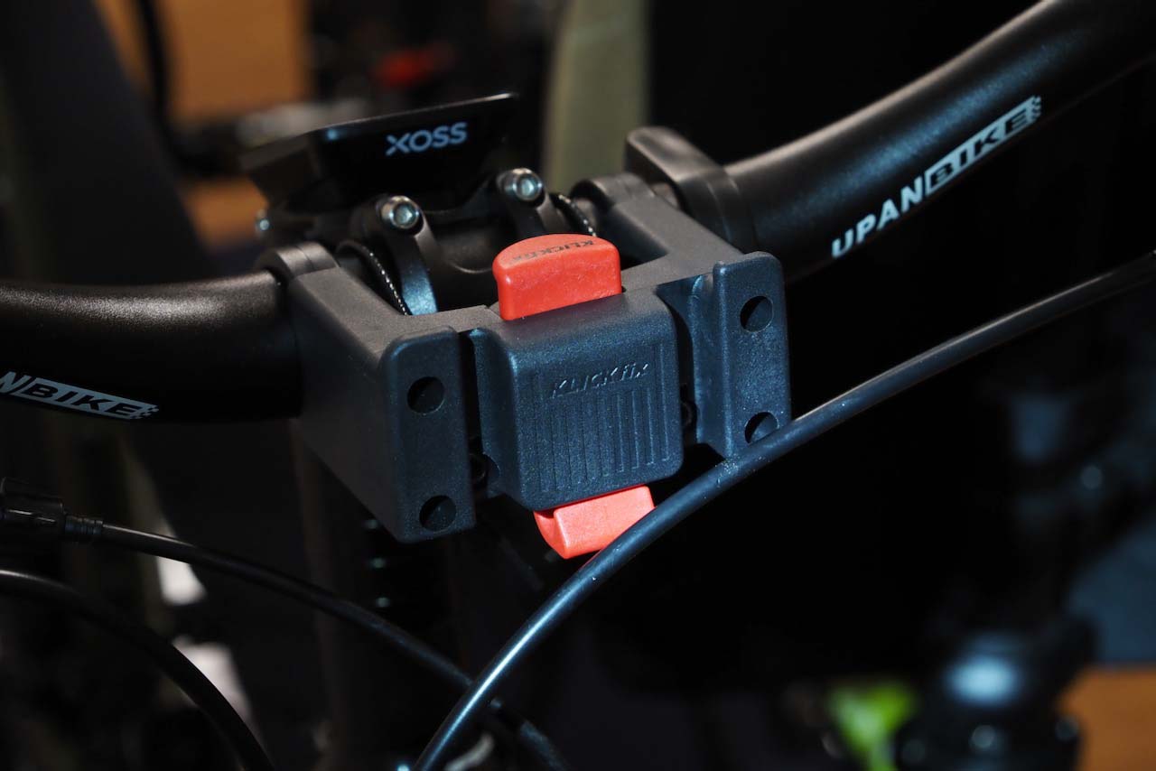 このアタッチメントには31.8mmバー対応版・25.4mm対応版のほか、盗難防止用のカギ付き・E-BIKE版などもあります。E-BIKE版は22-26mmと31.8mmの両方のバーに対応するクランプが付属し、なおかつアームの間隔が内側78mm(今回の記事で紹介したKF852は内側が60mm幅)になっています。