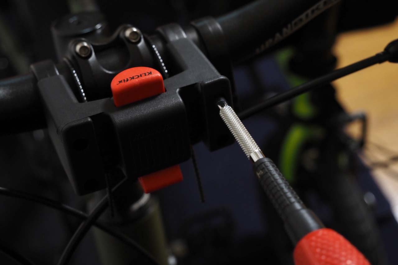 4mmヘックスレンチでボルトを締めてワイヤーを固定します。最初に片方のワイヤーだけ固定してしまってから、もう片方のワイヤーを引っ張るようにすると良いでしょう。