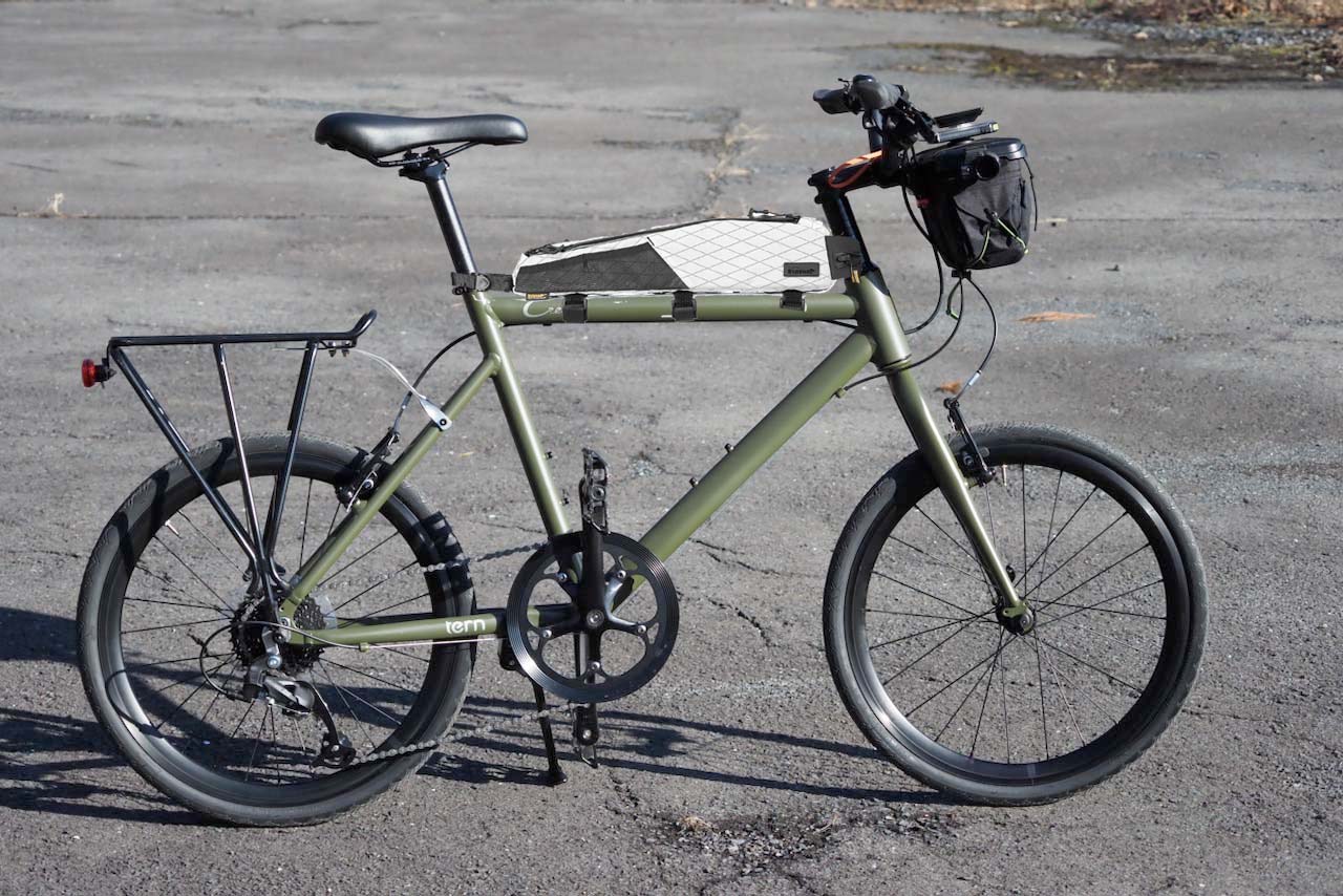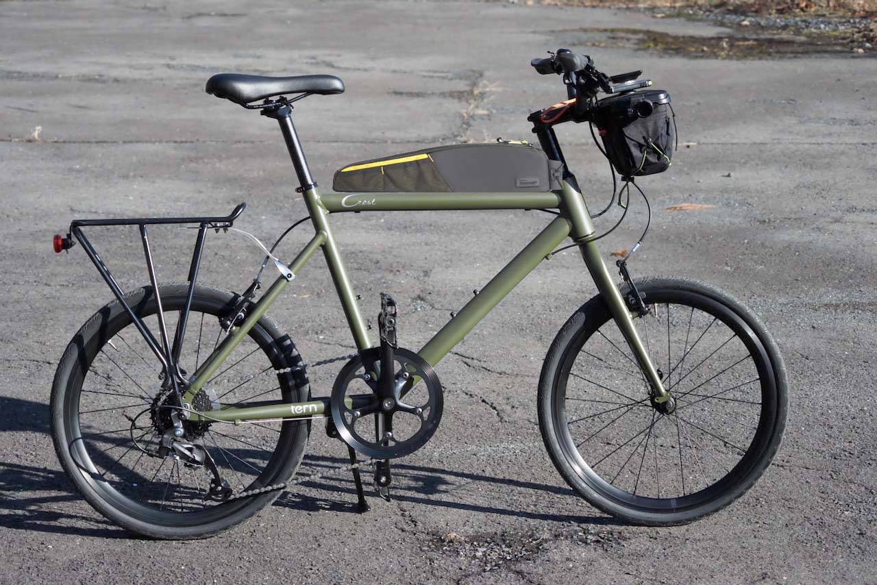 まずはこちらのRhinowalkのトップチューブバッグ。サイズはSMALLとLARGEがあるのですが、筆者が最近よくいじっているTern Crestという小径車(関連記事一覧)にLARGEがよく似合いそうな気がしているのです。