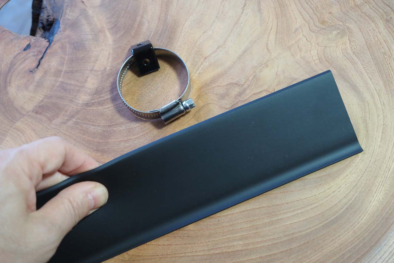 最初はCAT EYEのフレックスタイト・ブラケットを流用しようとしたのですが、Tern Crestのダウンチューブを巻くには長さが足りず、惜しくも断念。しかしAmazonレビューを眺めていたところ、ホームセンターにある金物でこのパーツを自作した方がいた(※英語で投稿していた方)ので参考にさせていただき、真似することにしました。