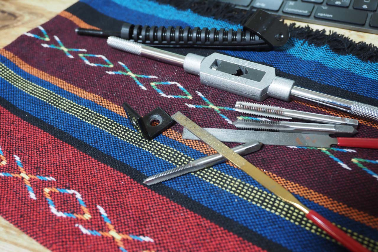 L字金具の穴にはスタビライザーのロッドが通らなかったので、手持ちの適当な工具を駆使して穴を広げることにしました。小さいリーマーがあると捗ったと思いますが、地道な手作業で1時間ほどかけて穴を拡張しました。最初から穴のサイズが合った金具を買ったほうがスマートです。