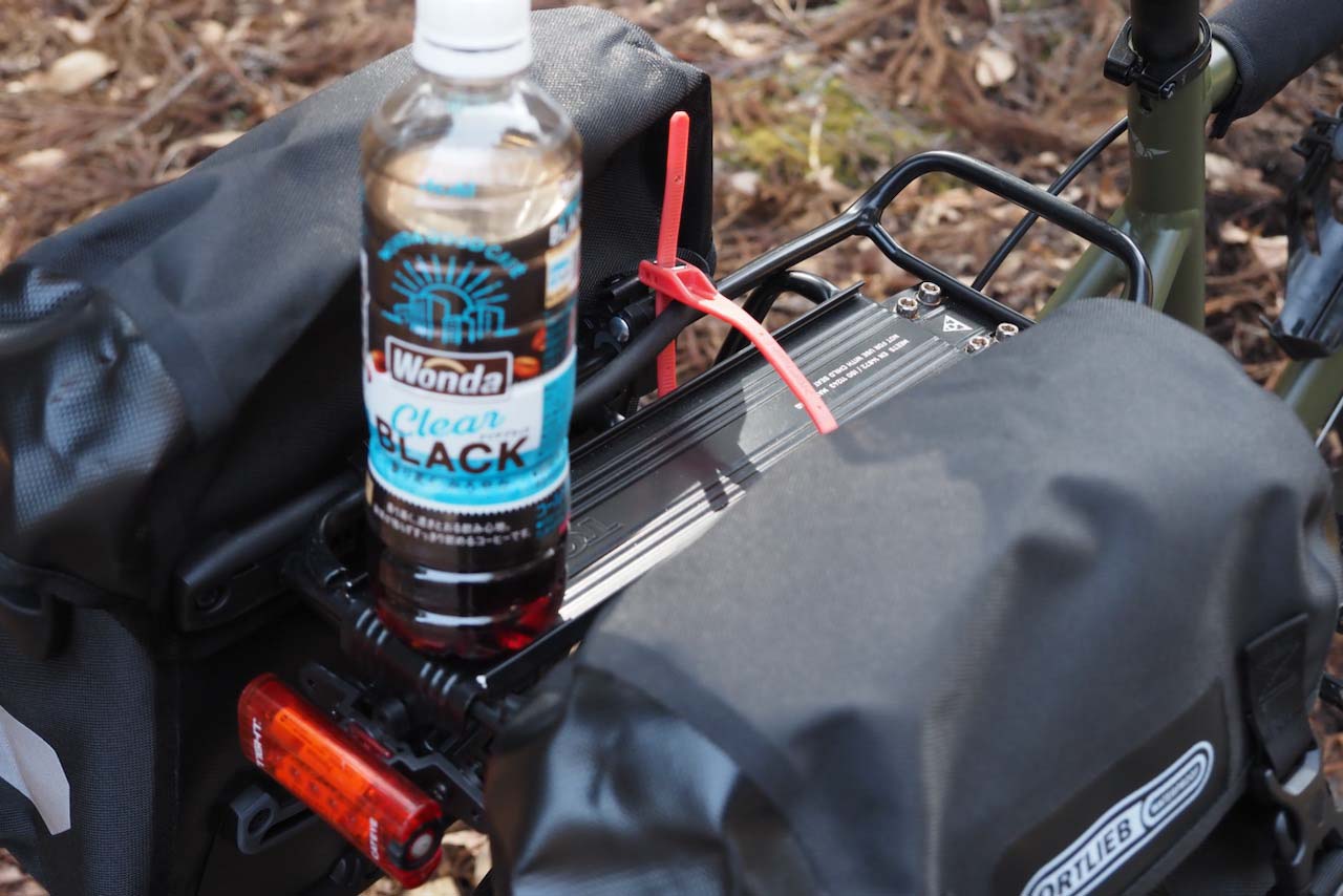 前回は黒を購入したのですが、今回は行方不明になった時にすぐ気付けるように赤にしてみました。上の写真のように、パニアバッグの持ち手とラックに回して簡易な盗難予防としても使っています。今回入手した個体は長く使っても緩んでこないような気がしています。