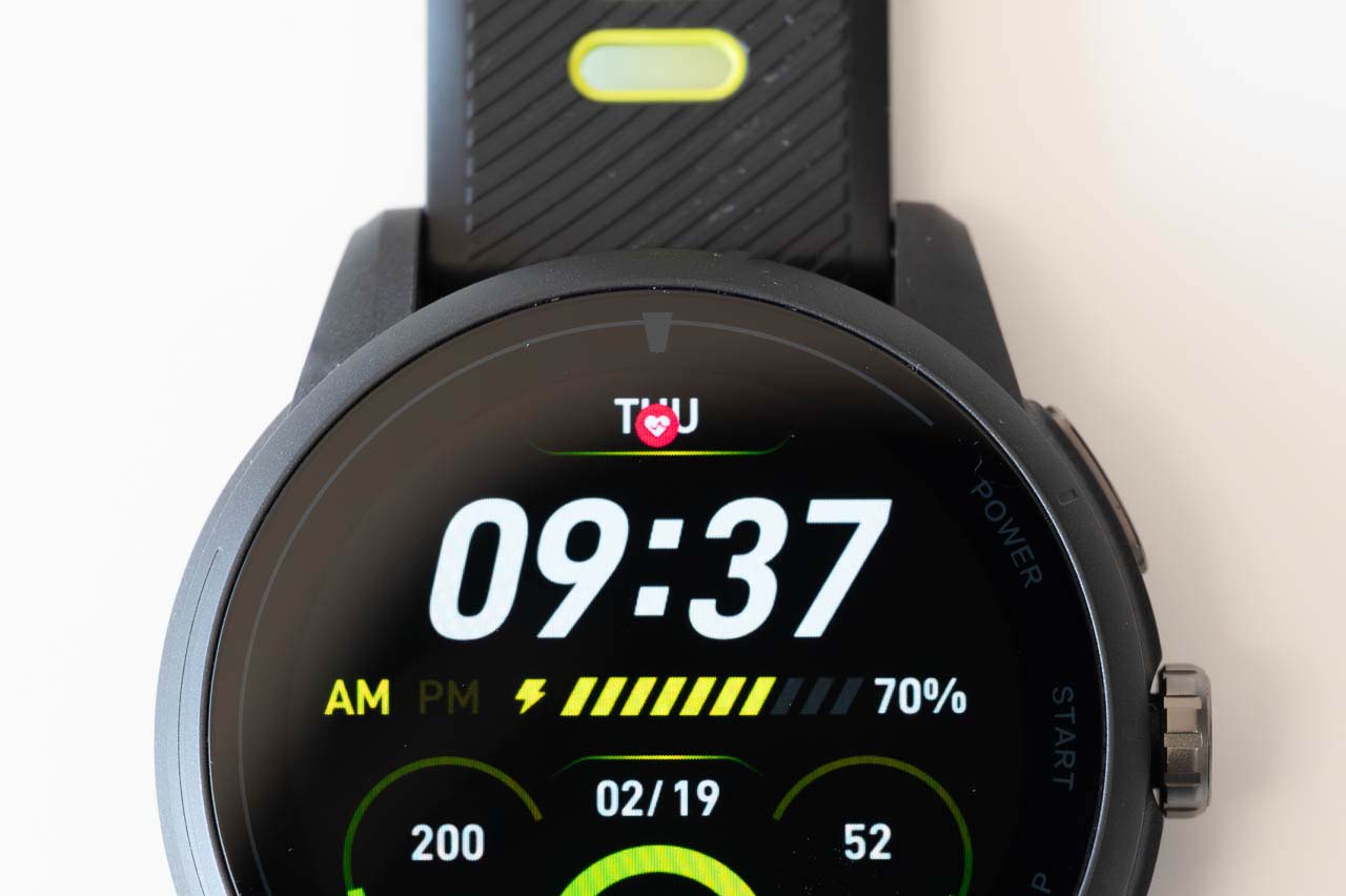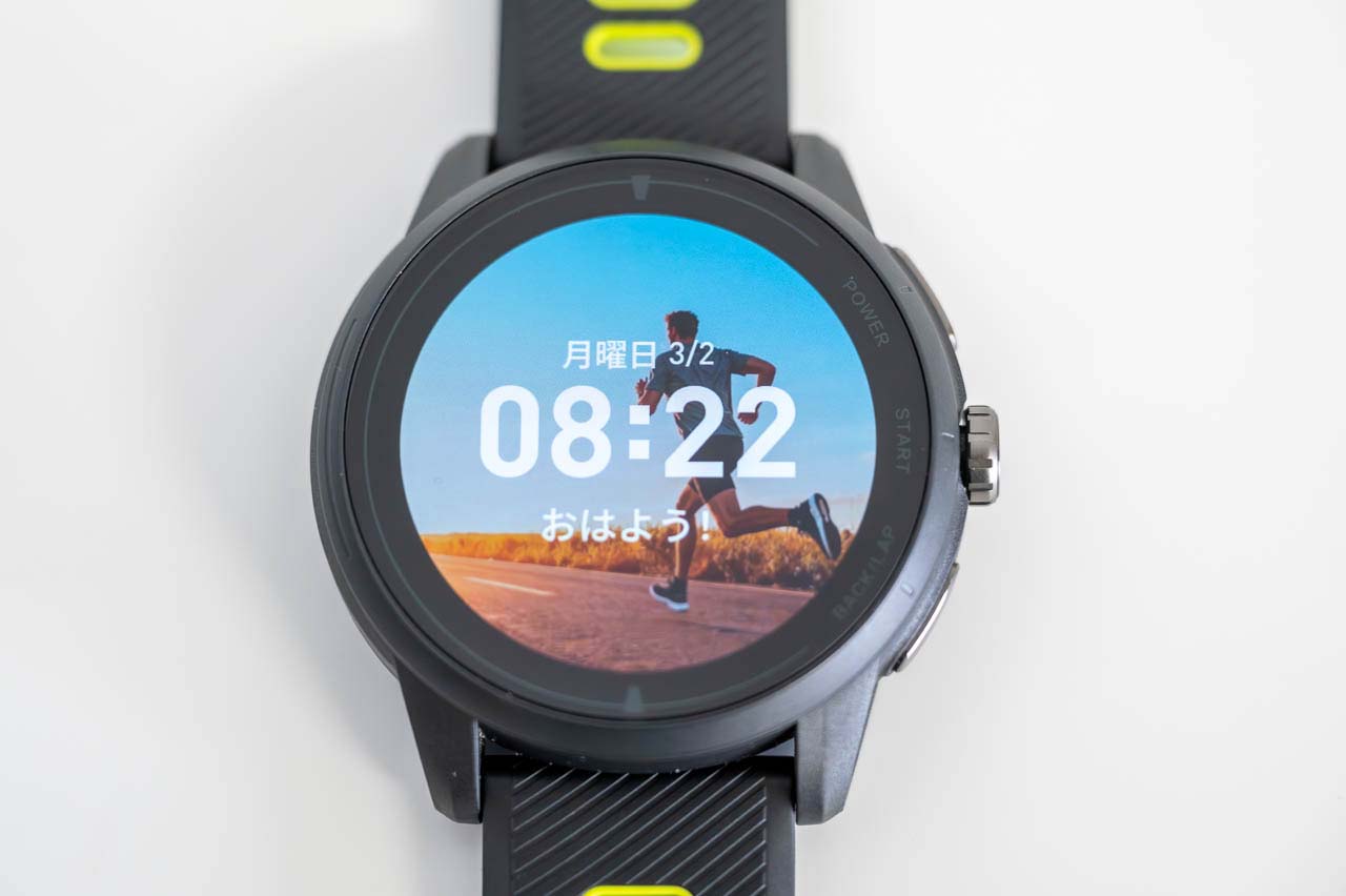 VeRunスポーツウォッチを装着して、真っ先に感じたのが「でっか!明るい!しかも高精細!」というディスプレイの良さでした。