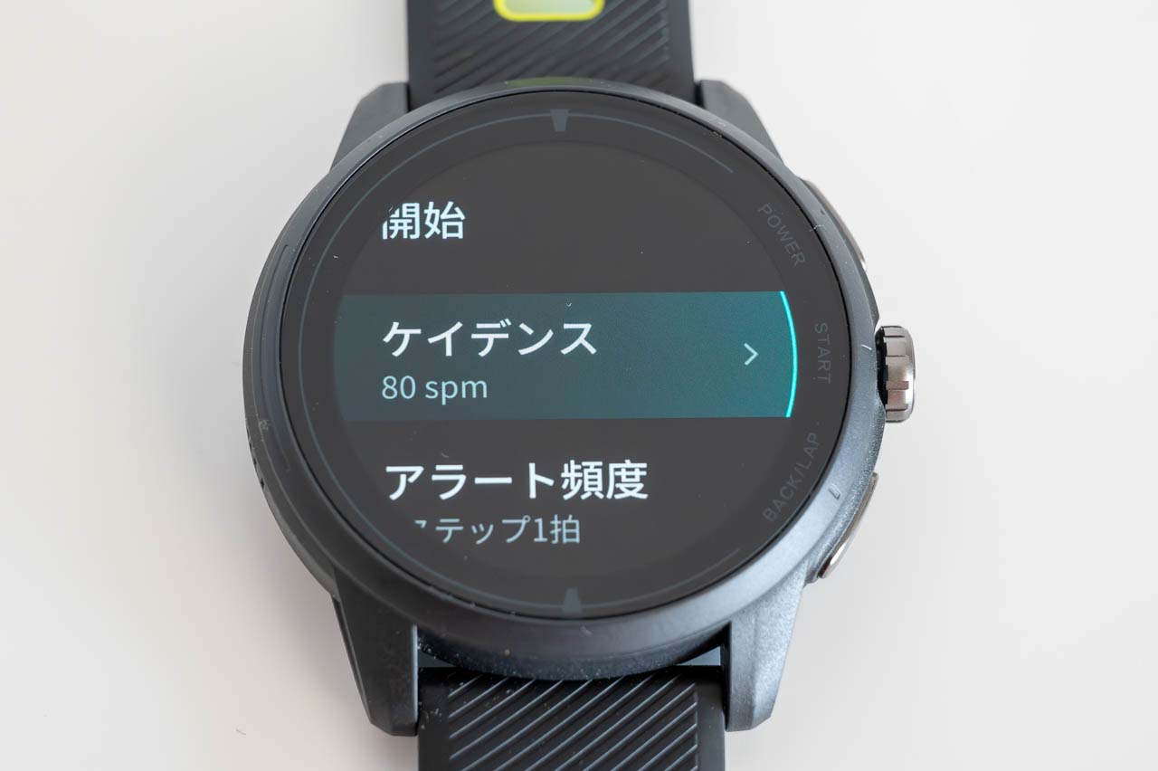 スピュールアイドル(あー ヘタこいたー!!)活動をするわけでもないのに、こんな機能が必要なの? と思っていたのですが、実際の画面を見て意図を理解しました。「一定のケイデンスを保ったまま走る」というときに、ガイドになってくれるんですね。トレーニングガチ勢の方には、特に嬉しい機能なのでは。