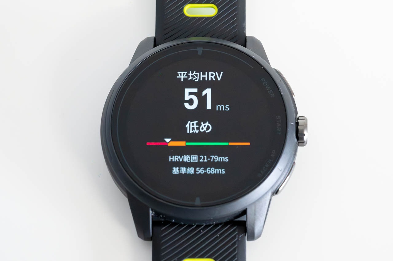 次に表示されるのが、平均HRV(心拍数の変動レベル)。HRVってなんぞや? と思ってググってみると「最適な心拍変動レベルは、健康と自己調節能力、そして適応力や回復力と関連しています」という記述を見つけました。