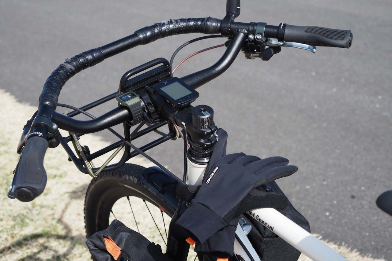 このハンドルを使いはじめたばかりの頃は、ステム両脇のポジションはほとんど使っていなかったのですが最近はかなり使うようになりました。ステムが低く遠くなっているので、こう見えてそこそこエアロなポジションを取れたりします。風景を眺めるのに良い超アップライトなポジション、リラックスした巡航に良いポジション、様々なポジションを楽しめる面白いハンドルです。