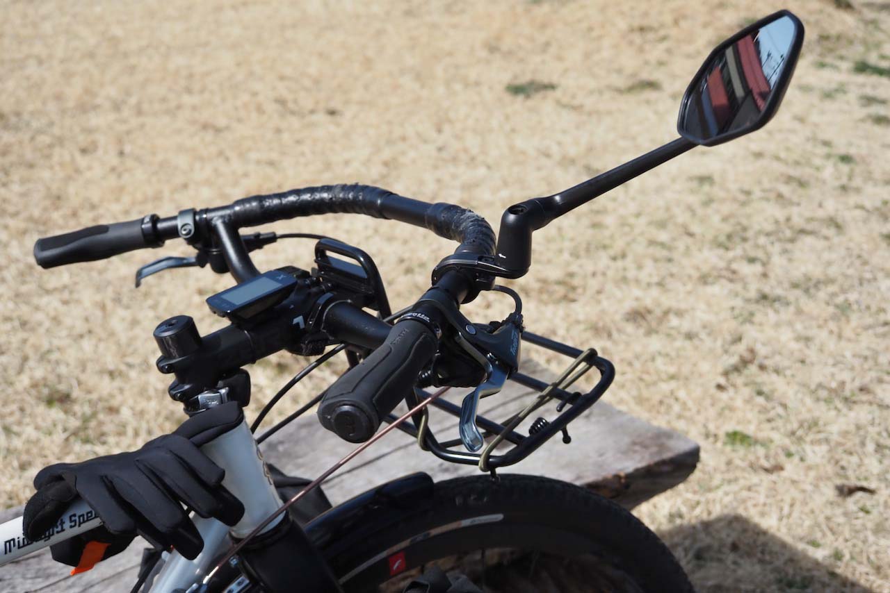 ミラーはRBRLの「ハンドルバー取付けタイプミラー」。駐輪時に邪魔になる時などは車体側にカカカカッ…と回し入れます。S SENQIハンドルとの相性はバッチリ。