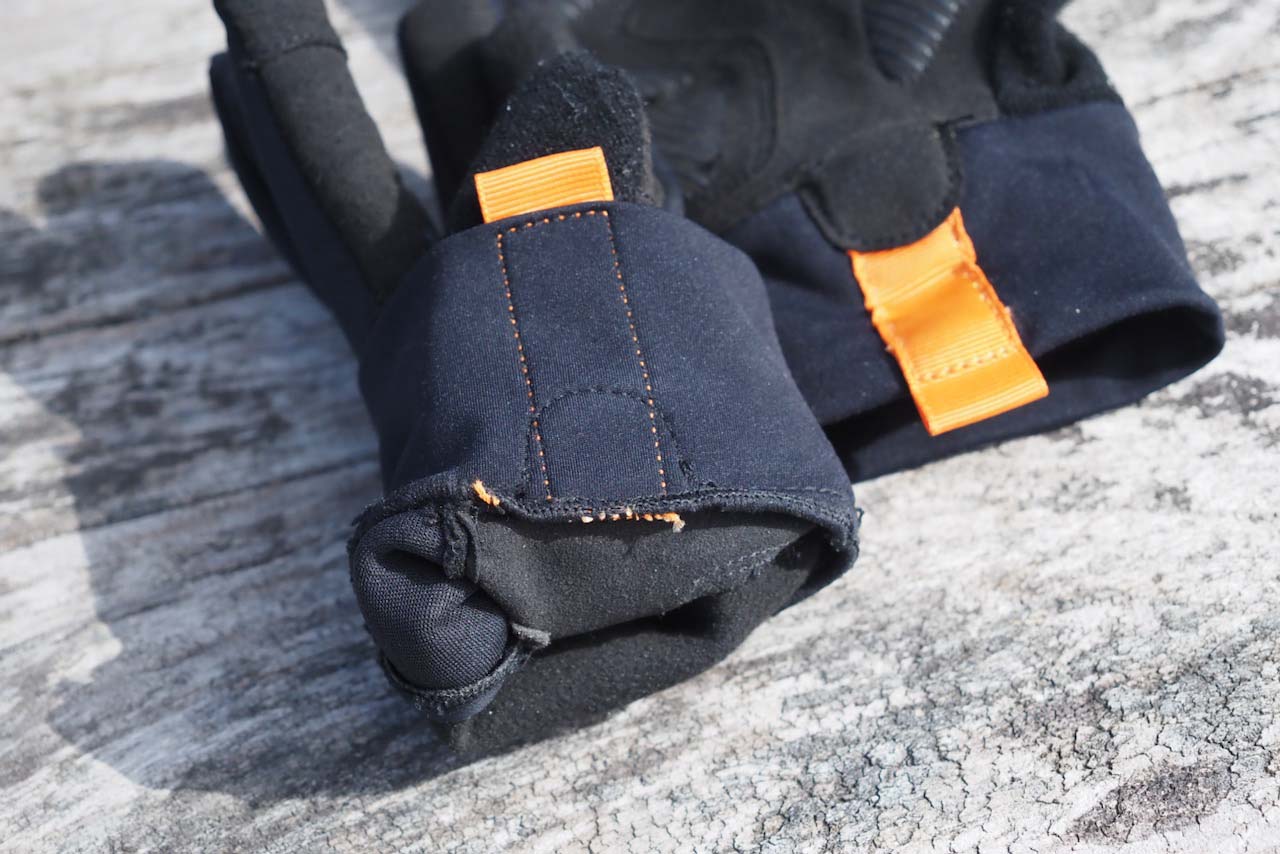 手首側はよく伸びるスパンデックス系素材。本体裏は起毛です。