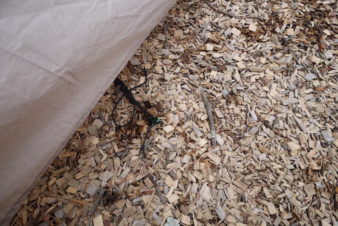 これで基本的に設営完了です(ストームロープは別途張ります。また各種ロープやベルトのテンションを調整します)。このテントには専用の別売りグランドシートも用意されていますが、重量増になるのと構造的に浸水リスクが大きいような予感がするため、筆者は使っていません。