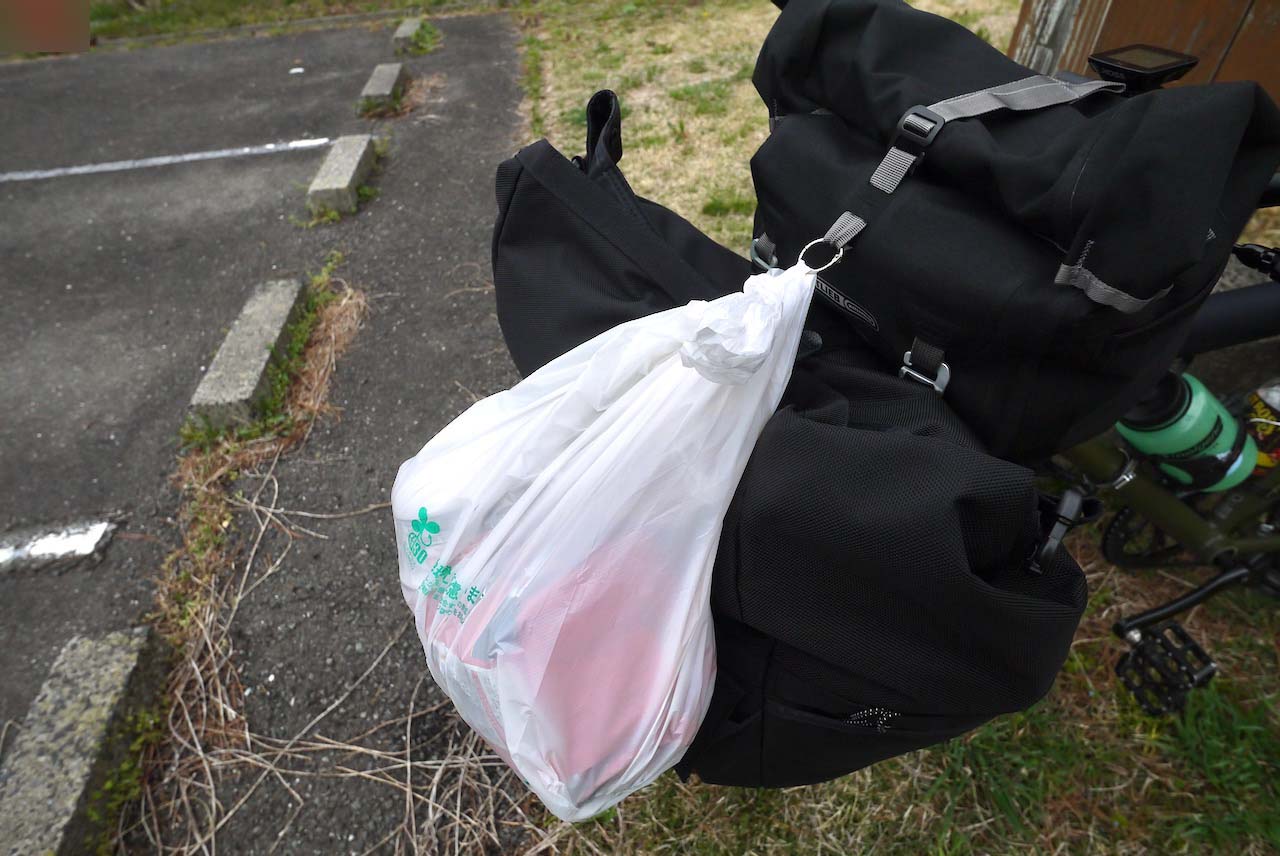 旅行中の食料は、基本的には持参しています。なるべくかさばらない乾麺やパスタ、ナッツやドライフルーツのような乾燥食料は数日分必ずバッグに詰めているのですが、食料は自転車キャンプツーリング・バイクパッキングではかさばりやすいもので、運搬できる量には限界があります。