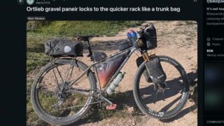 お役立ち超ミニネタです。オルトリーブの小型パニアバッグ「グラベルパック」を同社製の「クイックラック」の天板部分に載せてトランクバッグのように運用している写真が海外掲示板のバイクパッキング・コミュニティで紹介されていました。使えそうなアイデア...